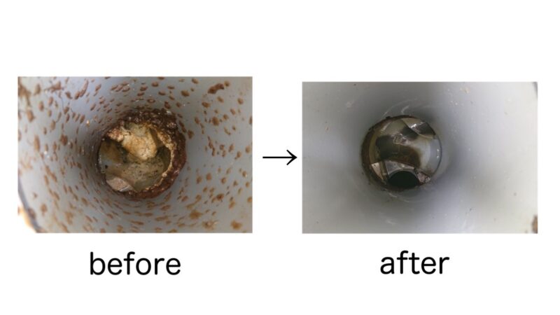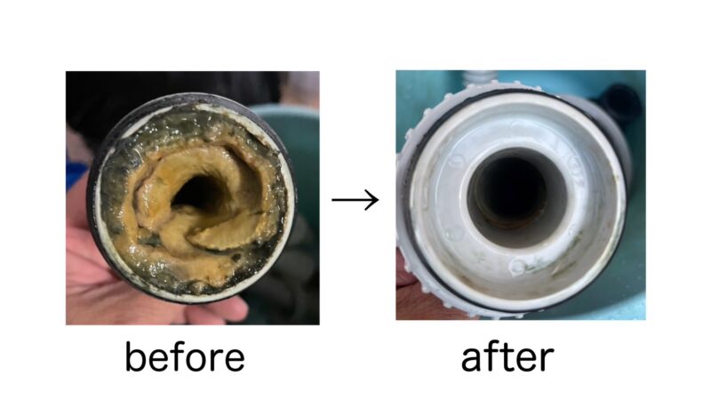 A.普段目にしない箇所に汚れが蓄積しており、詰まる直前です!排水管の破損や水漏れを起こす前に早めの洗浄をおすすめしています!